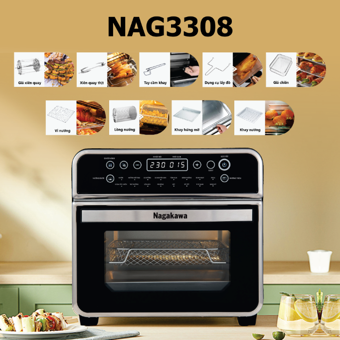 - Tên hàng: Nồi chiên không dầu 16L Nagakawa NAG3308