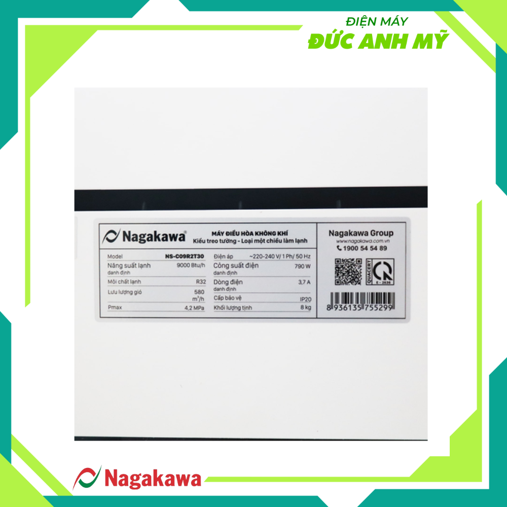 - Công suất làm lạnh: 1 HP - 9.000 BTU